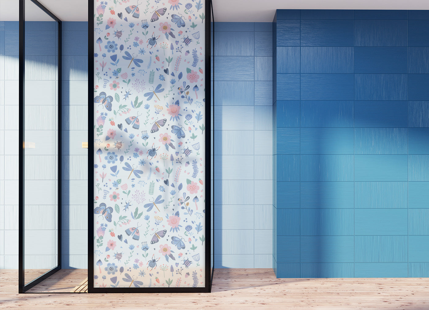 Step into a magical, storybook world with our Enchanted Garden Privacy Film. This enchanting design is teeming with life, featuring delicate butterflies, friendly dragonflies, charming little bugs, and a meadow of blooming wildflowers. Rendered in a soft, dreamy pastel palette of gentle pinks, calming blues, and sweet lavenders, this pattern turns any window into a delightful scene from a fairy tale.