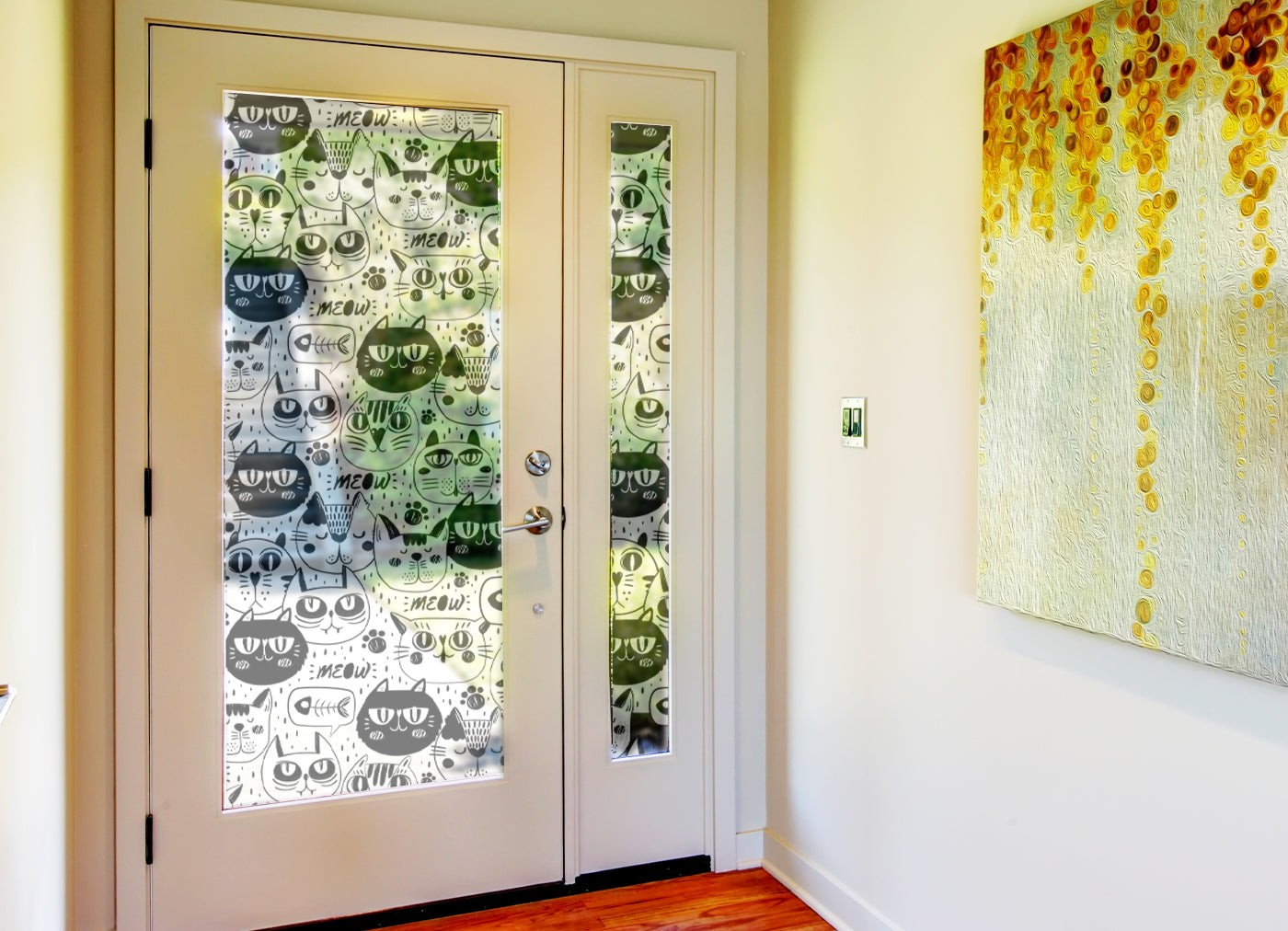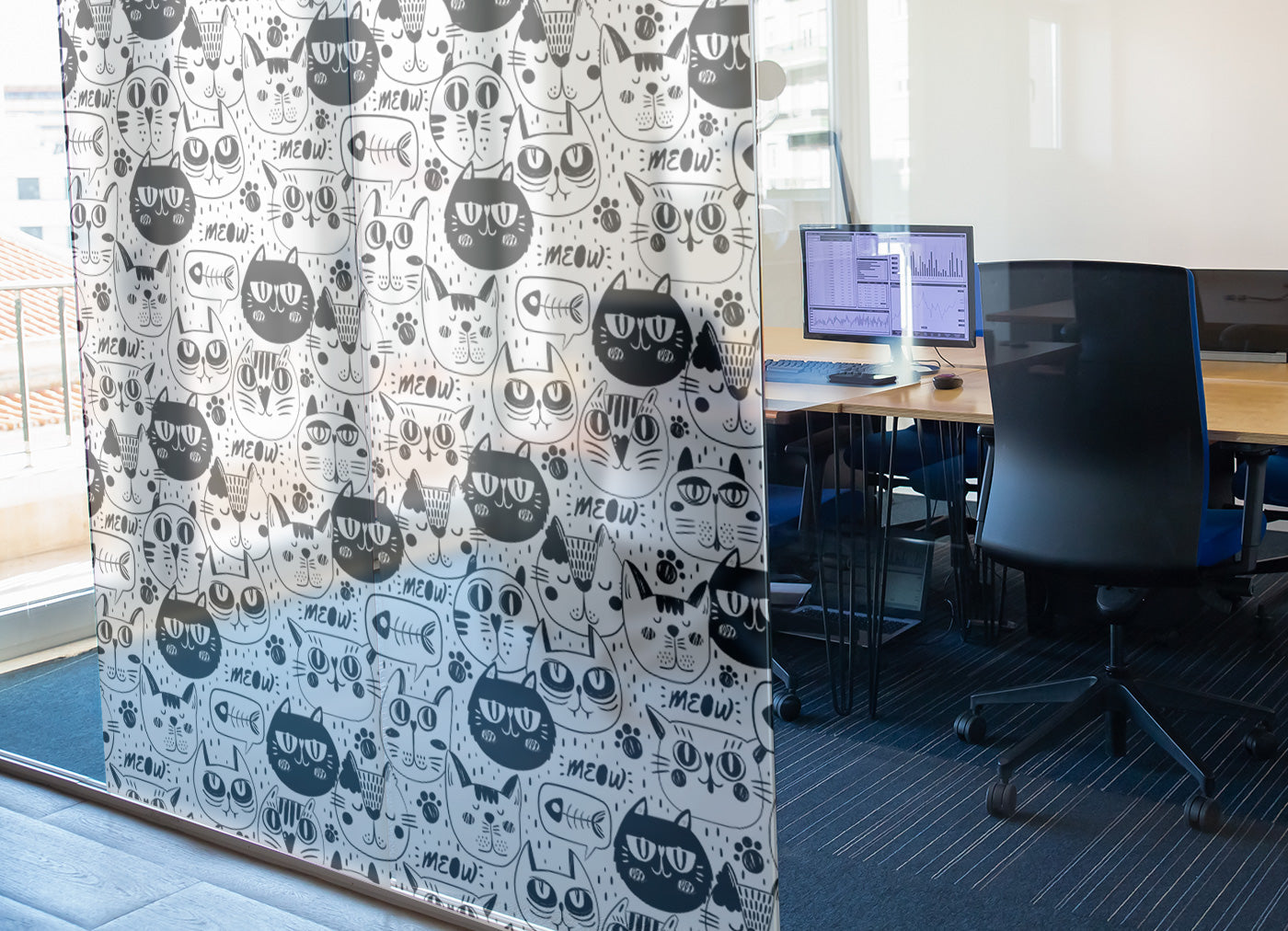 Unleash your inner cat lover and fill your space with purr-fectly playful personality! Our Cat Doodle Privacy Film is a celebration of all things feline, turning any window into a delightful gallery of quirky cat characters. This film is the ideal solution for anyone looking to combine fun design with functional privacy.