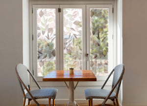 Bring a sense of gentle calm and modern elegance into your home with our Whispering Leaves Window Film. This exquisite design features a cascade of semi-translucent leaves that appear to gently float and overlap, creating a beautiful sense of depth and movement. The sophisticated and soothing color palette—featuring dusty rose, soft sage, and warm taupe—evokes the quiet beauty of a tranquil forest floor, creating a peaceful, airy atmosphere that feels both contemporary and deeply connected to nature.